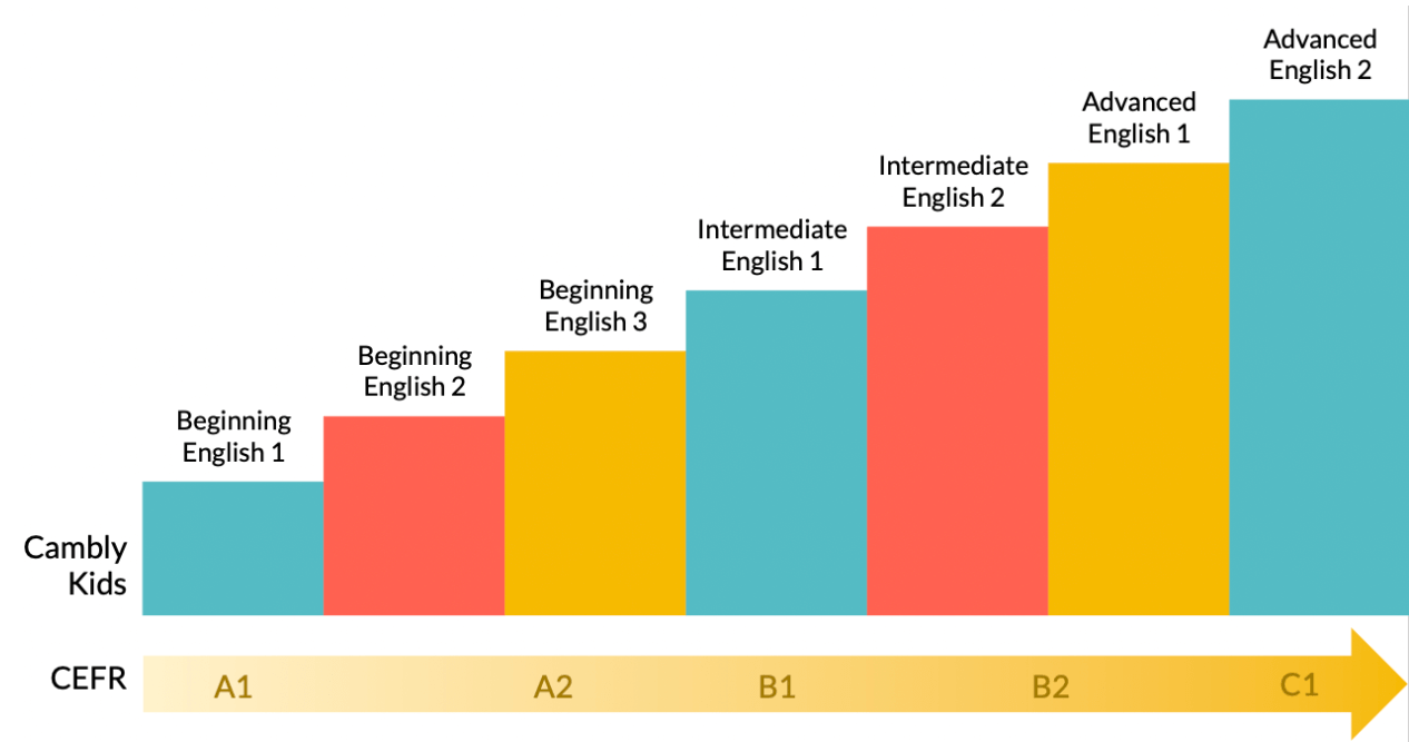 Cambly Kids 課程按照 CEFR 歐洲共同語言參考標準進行分級。CEFR 在國際上被廣泛用作語言能力標準化的依據。根據 CEFR,我們提供的 Cambly Kids 課程涵蓋 A1 到 C1 階段,即從語言初學者的 A 級階段,到語言進階者的 C 級階段。